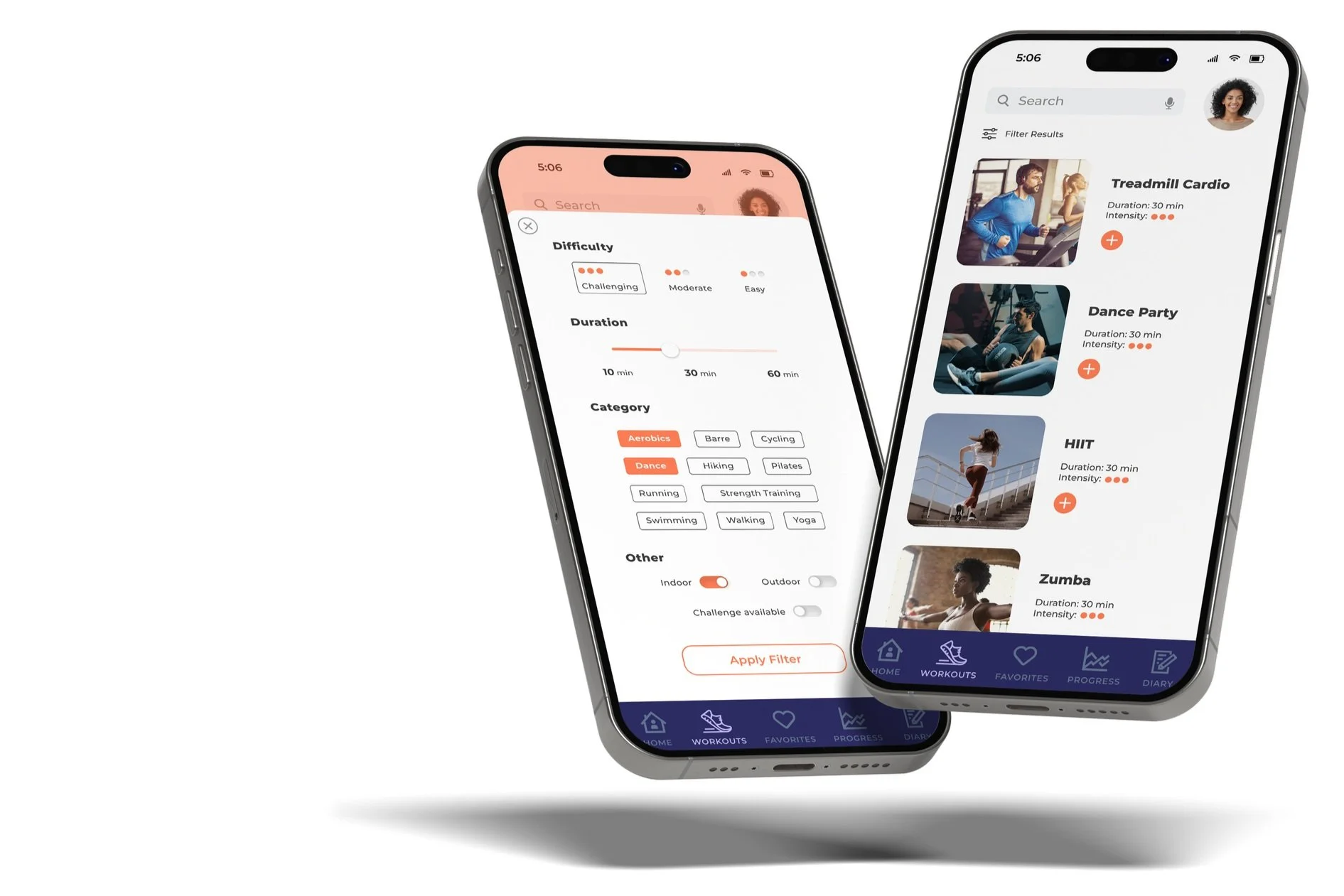 Exercise filter & modal windows