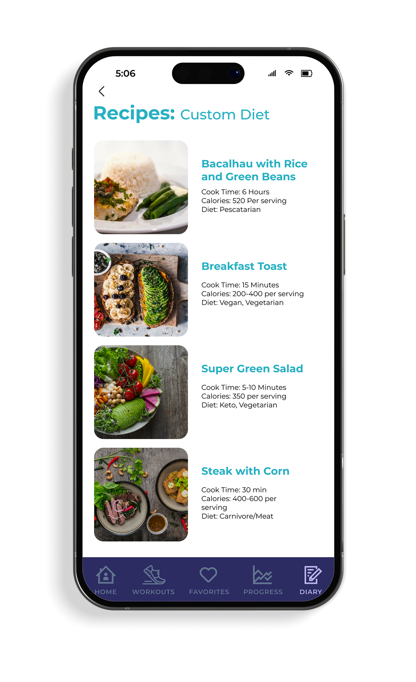 Key features: Workouts, goal tracking, recipes/calorie tracking